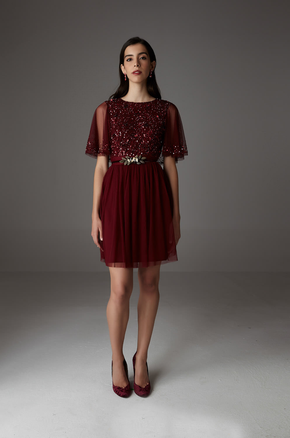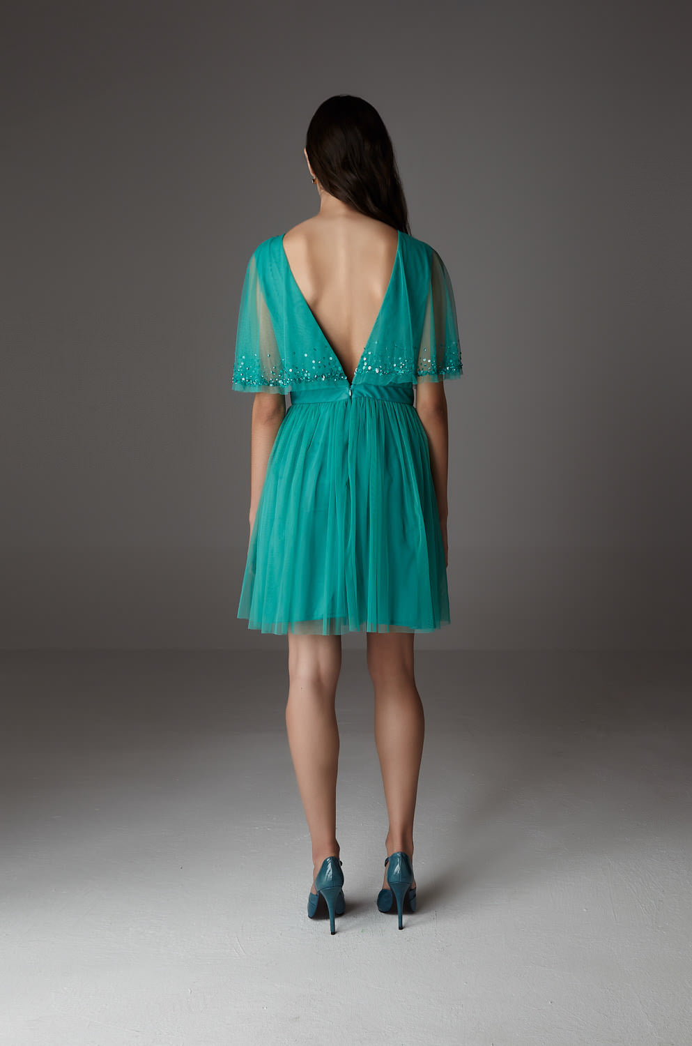 El Abba mini es un vestido único con una estructura moderna y fluidez encantadora. Con bordados a mano delicadamente trabajados. Confeccionado en España, El chiffon poliester fluye suavemente alrededor de la figura, creando una silueta elegante y refinada que destaca en cualquier evento especial.