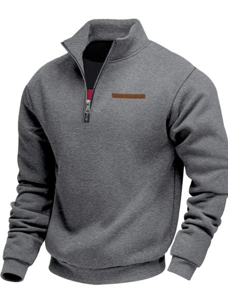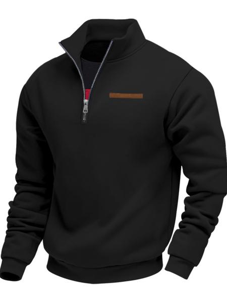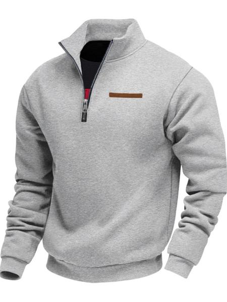 Men'S Fall Winter Fleece Sweatshirt, Half Zipper Fake Pocket Design, Loose Fit Stand Collar Pullover, Outdoor Casual Sporty Warm Wear