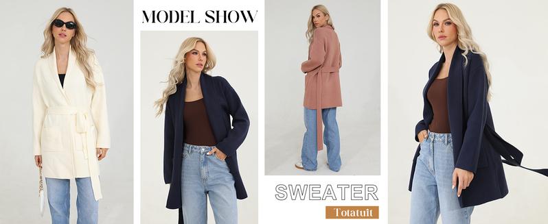 Totatuit Women'S Oversized Long Cardigan Sweater with Belt 2025 Fall Spring Open Front Knitwear with Pockets Elegant Fit Cozy Soft Fabric Casual Cute Solid Color Lapel Collar Two Pockets Knee-Length Super Soft Material Comfortable Everyday Wear
