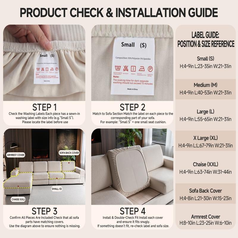 【Universal Fit】: Designed for multiple sofa types, this cover fits L-shaped sofas and 1-4 seaters securely.